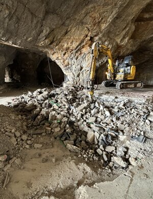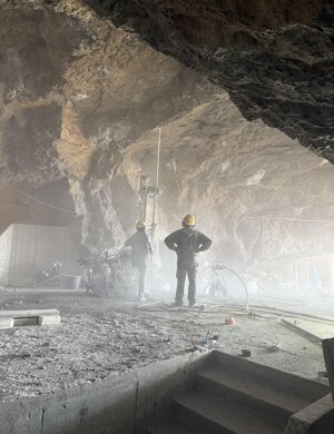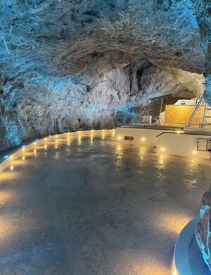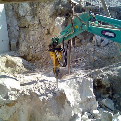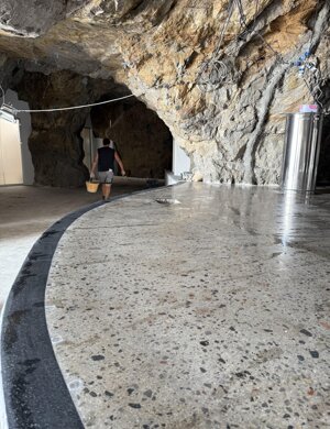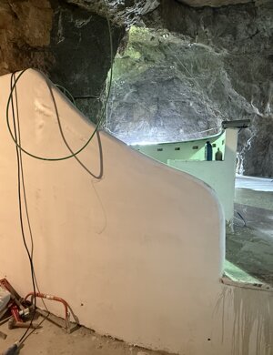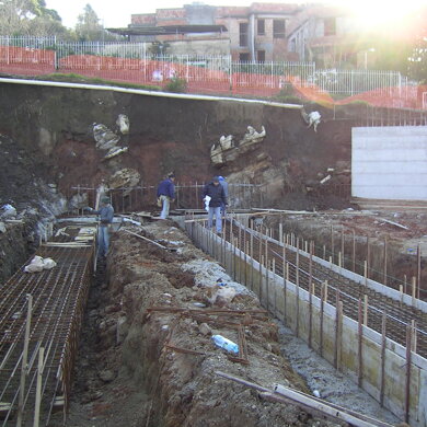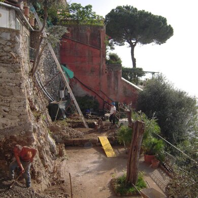 Realizzazione di piscina su costone in roccia, sistemazione degli spazi esterni