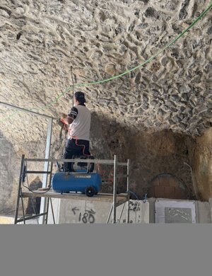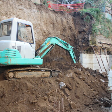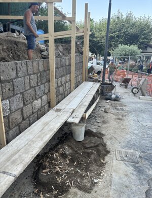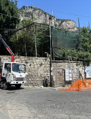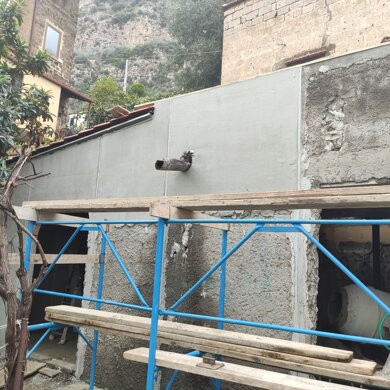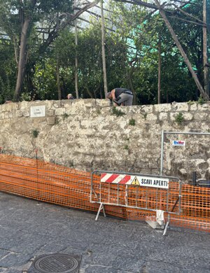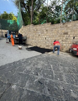 Allargamento della sede stradale, rifazione muratura in tufo. Comune di Meta