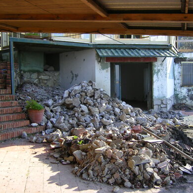 Ricostruzione di immobile, sistemazione delle aree esterne